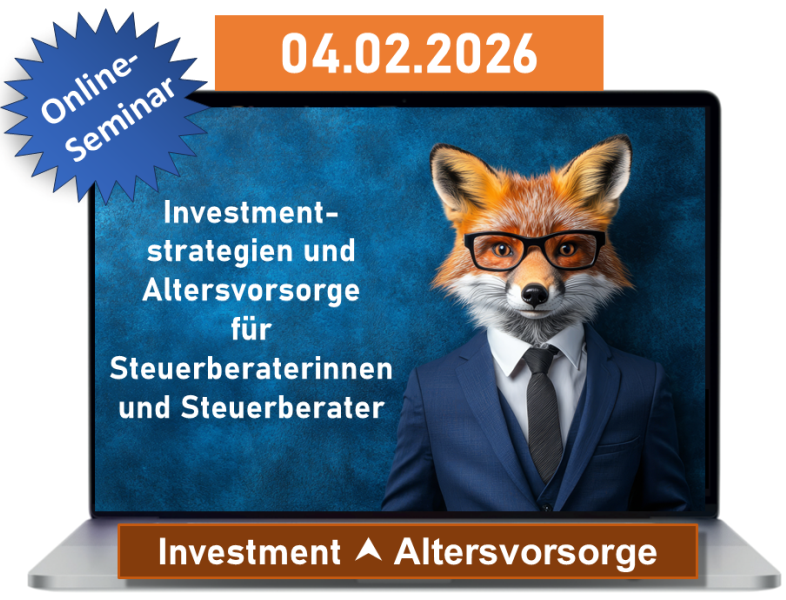 Dieses Online-Seminar richtet sich an alle Steuerberaterinnen und Steuerberater, die wissen wollen, wie sie mit smarten, steueroptimierten Investments ihre finanzielle Zukunft erfolgreich gestalten und absichern können.